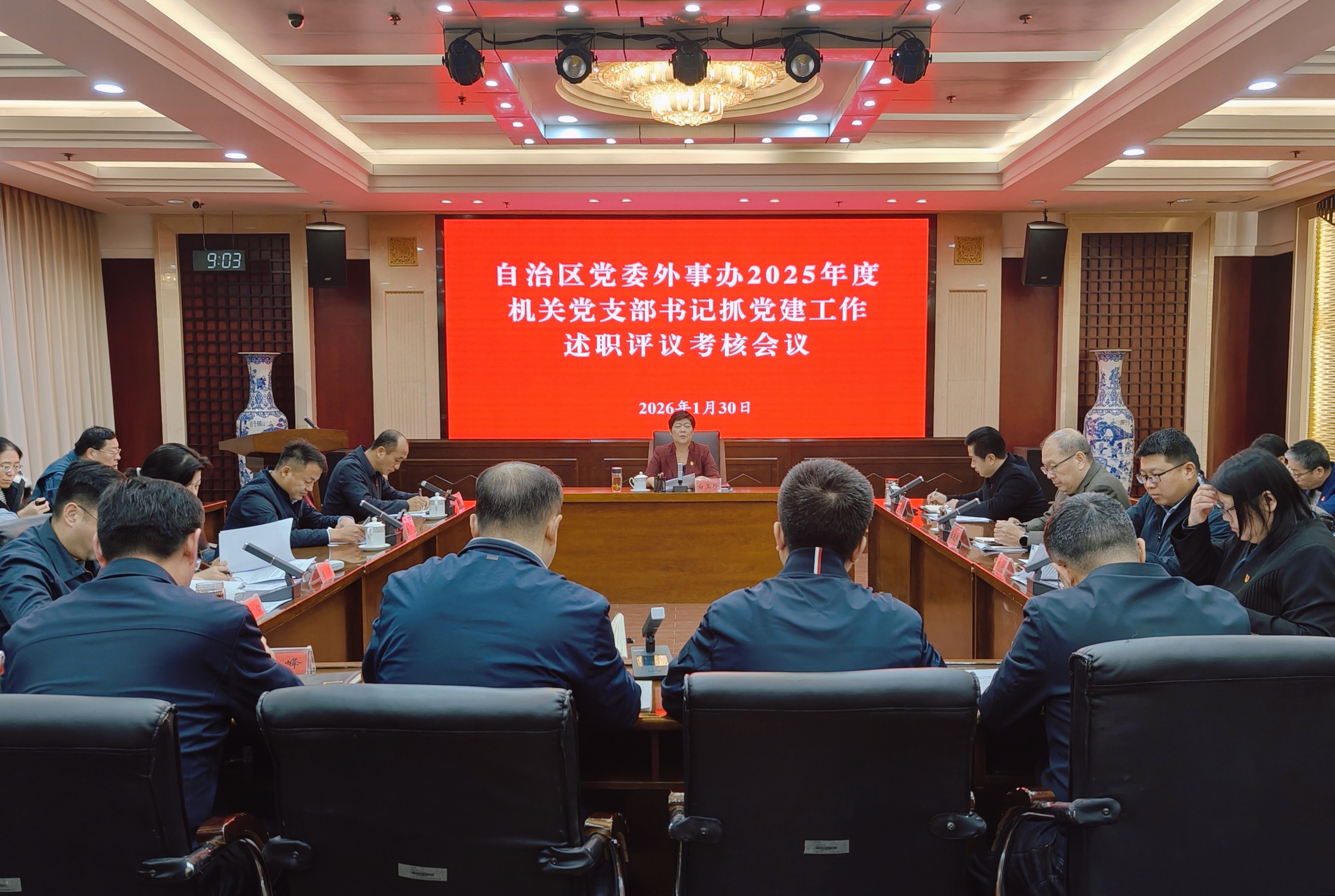 会议指出,2025年全办各级党组织坚持以习近平新时代中国特色社会主义思想为指导,认真贯彻落实新时代党的建设总要求,以改革创新精神深化“五型”模范机关建设,主动服务国家总体外交大局和自治区高质量发展全局,政治引领持续提升,教育成效持续彰显,担当奉献持续强化,基础建设持续增强,工作作风不断优化,机关党建彰显出新作为新气象。