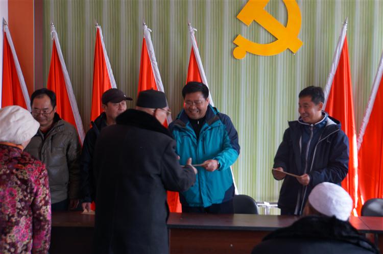 办领导向65岁以上老人发放慰问金