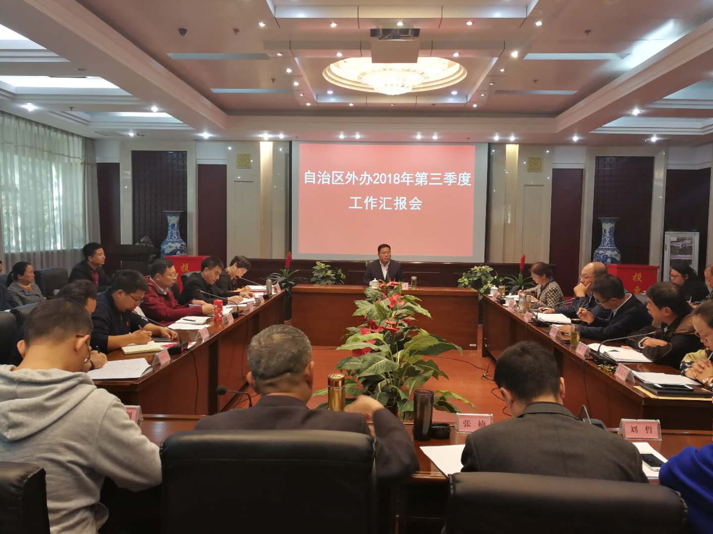 10月9日,自治区外办召开2018年第三季度工作汇报会,听取各处室中心工作汇报并安排部署第四季度重点工作。