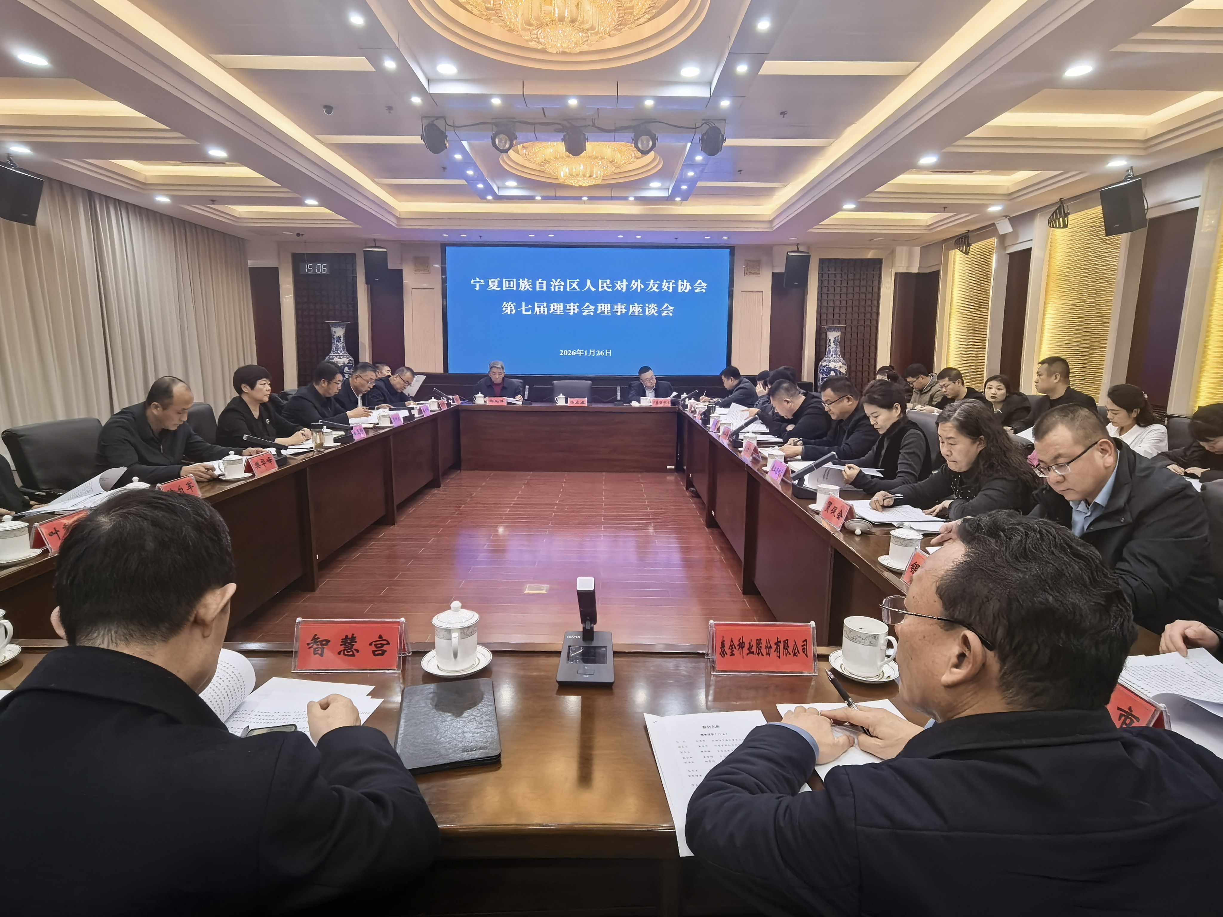 1月26日,宁夏人民对外友好协会召开理事座谈会,第七届理事会常务理事及部分理事代表共41人参加会议。会议集中学习了习近平总书记关于民间外交的重要论述及全国对外友协有关会议精神,通报了宁夏对外友协第七届理事会2025年工作情况。
